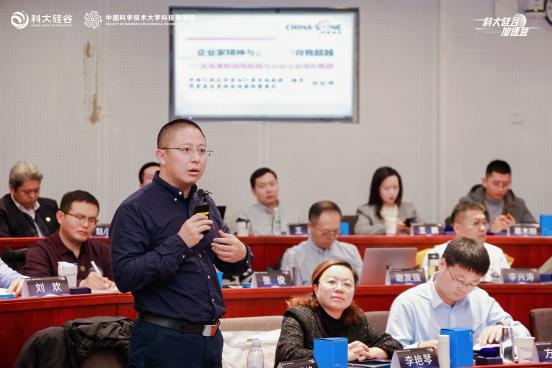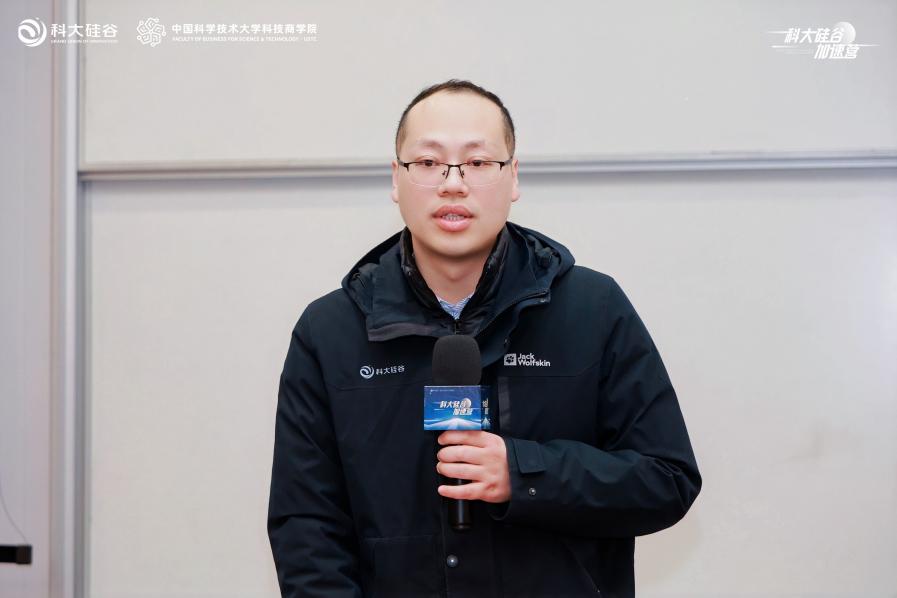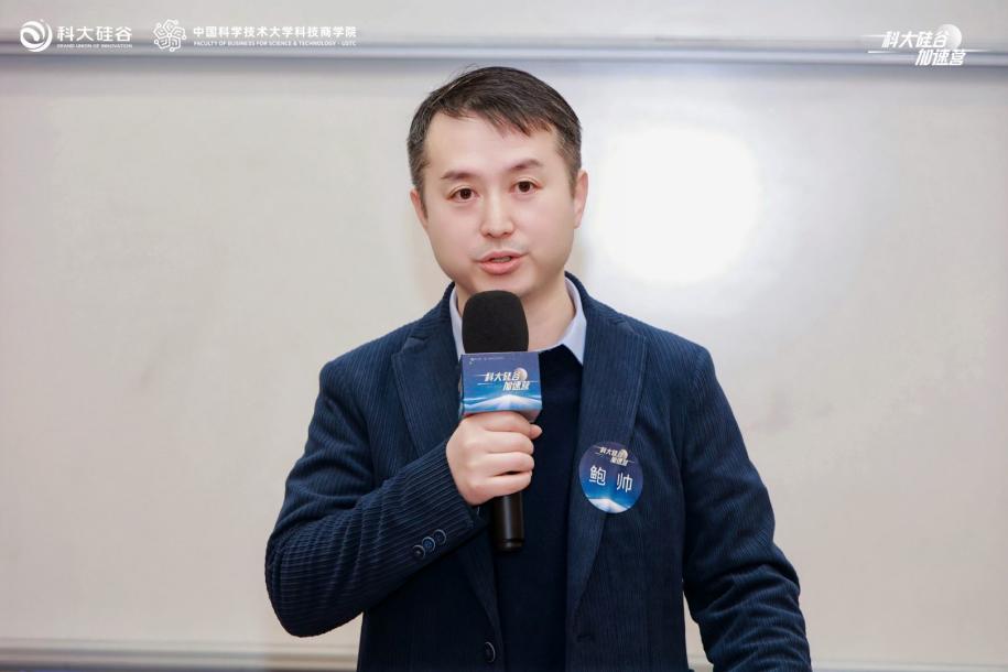 随后,安徽深信科创信息技术有限公司联席CEO鲍帅作为学员代表发言。他在发言中提到,加速营班级生态汇聚了量子计算、新材料、人工智能、生物医药、低空经济等多个前沿科技领域的优秀创业者,31位学员平均年龄仅39岁,是新质生产力和硬科技创业的鲜活写照。他坦言,作为技术创业者,参与加速营的初心是找到技术激情和商业成功间的跃迁平衡点,并希望在这个充满智慧的平台上,练就懂科技、懂产业、懂资本、懂事长、懂管理的“五懂”复合能力,与优秀的老师和同学同行,成为彼此未来成长道路上相互支持的动力。