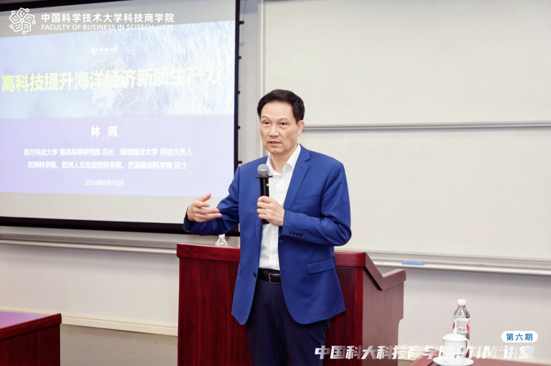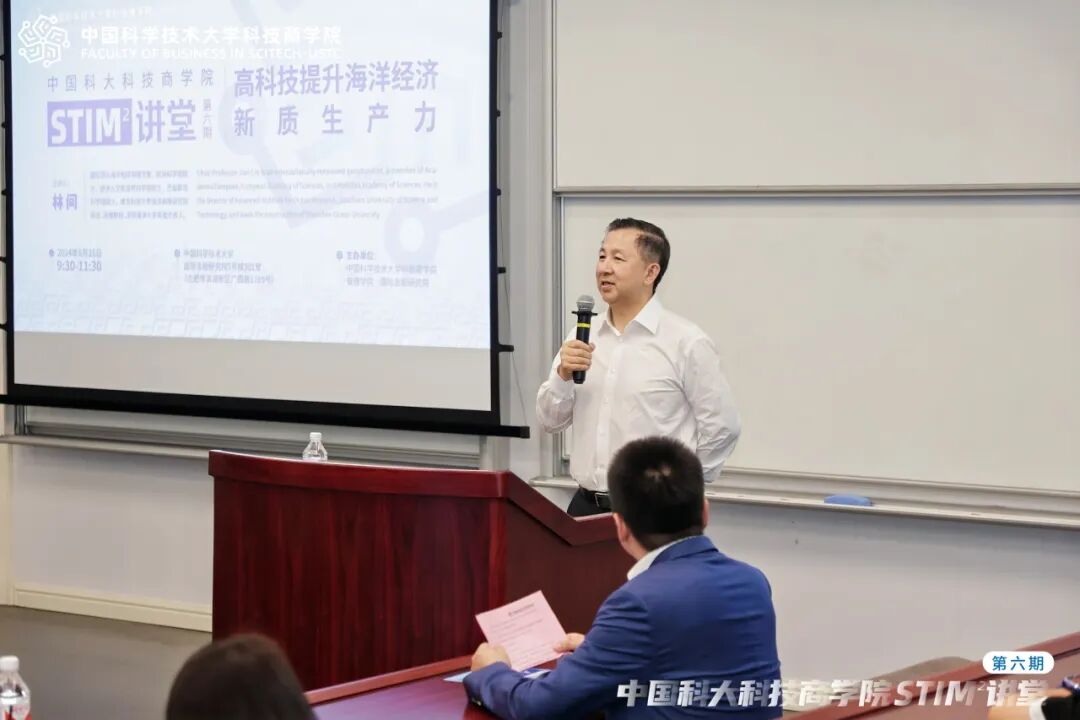 科技商学院第六期STIM²讲堂于近期在中国科大国际金融研究院举行,欧洲科学院、欧洲人文和自然科学院及巴基斯坦科学院三院院士、南方科技大学海洋高等研究院院长、深圳海洋大学筹建负责人林间教授应邀作题为《高科技提升海洋经济新质生产力》主题分享。来自安徽省地矿局、华东冶金地质勘查局、三十八所等单位代表,以及中国科大核科学技术学院、地空学院、管理学院等师生齐聚讲堂,科技商学院教授、美国国家工程院院士张捷为此次活动致辞,活动由学院教务长邹宇峰主持。