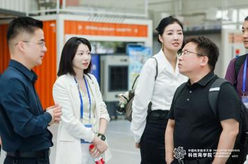 (左:安徽省聚变产业联合会副秘书长李阳带领参观聚变创新馆,