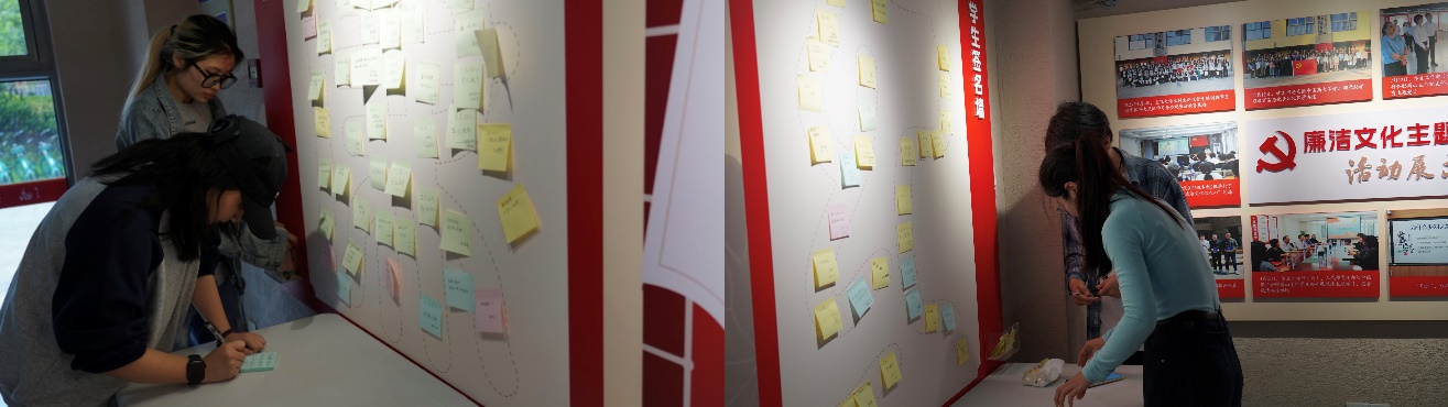 讲解结束后,党员们积极交流思想感悟,并在留言墙认真书写个人感悟。大家纷纷表示将以此次活动为契机,在今后的学习和生活中时刻保持廉洁自律,自觉遵守各项规章制度,以实际行动践行廉洁理念,为营造风清气正的校园环境贡献自己的力量。