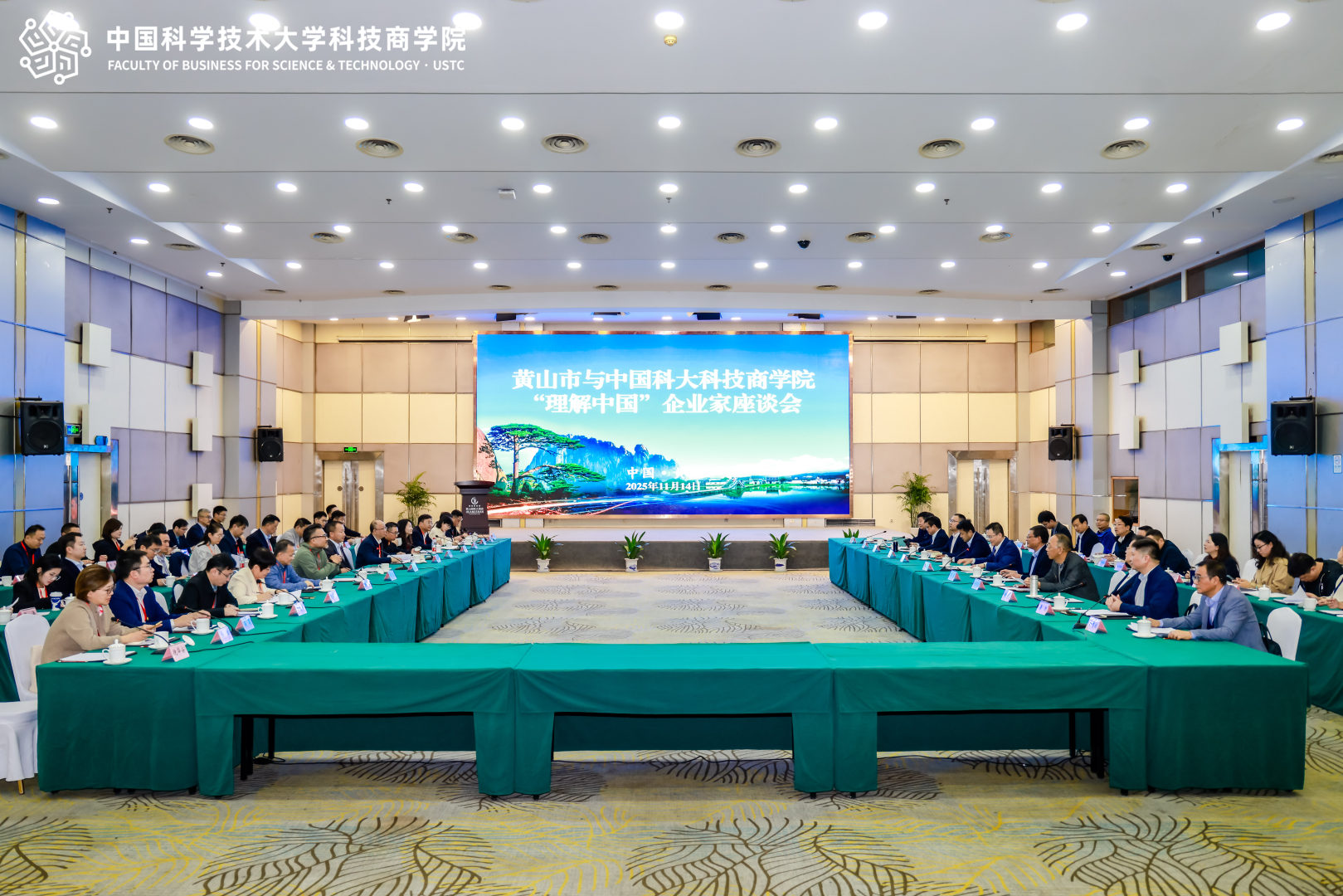 11月14日下午,黄山市与中国科大科技商学院召开“理解中国”企业家座谈会。黄山市委常委、市政府党组副书记王赵春主持会议,安徽省政府办新安江生态补偿处处长王家胜、黄山市政府副秘书长周勇、中国科大科技商学院企业家项目负责人陈金炳、安徽中国科大校友会首届秘书长胡韶山,黄山高新区管委会、市发改委、市工业信息化局、市文旅局、市投资促进局、黄山旅游集团、黄山建投集团、市重点领域产业服务专班、相关区县投促局和本地产业链相关企业参加座谈。