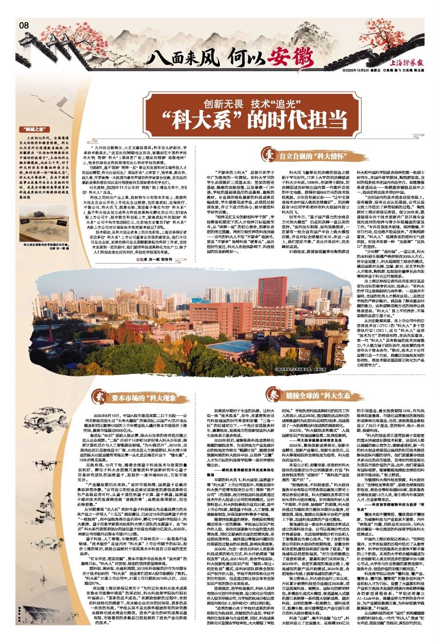 “红专并进、理实交融”,资本市场并非这些技术“追光者”的最终目标,“科大人”对首创、独创的坚持更值得珍视。