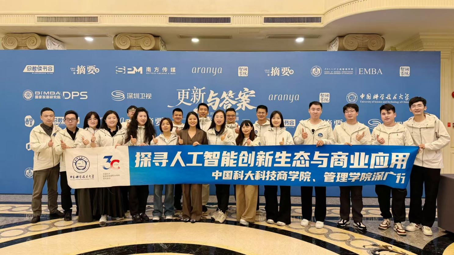 近日,中国科学技术大学科技商学院、管理学院组织30多位EMBA、MBA等专业学位师生走进粤港澳大湾区核心城市深圳与广州,开展以“科商引领 智瞰湾区”为主题的人工智能创新生态与商业应用深度研学活动。本次活动由中国科大管理学院创新实践协会承办,精心遴选中国科大校友标杆企业,通过企业参访、主题分享、研讨交流、学术高地对话、校友互动等多个维度,为学员搭建了链接科技前沿、商业实践与未来趋势的立体化学习平台。