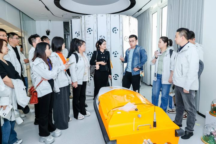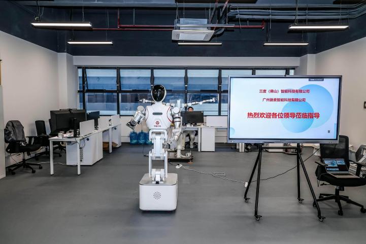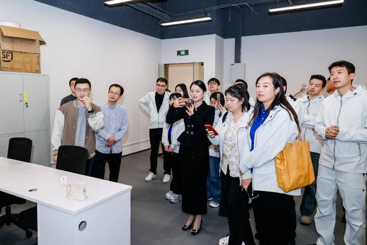 随后,在港科大(广州)知识转移办赵天予老师的带领下,大家先后参观了人工智能与数据科学实验室和港科大(广州)科创成果转移转化基地,深入了解前沿技术攻关进展,以及基地“产学研用”协同创新模式。值得一提的是,在成果转化转移基地,我院师生参访的三度智能&广州磐柔公司正是我校计算机学院几位博士生初创的聚焦产业场景的具身机器人企业。参观了企业最新研发并投入应用的工业场景具身机器人后,还听取了公司主要创始团队成员关于目前发展现状和研究成果的介绍。该团队早在2016年参与研发的机器人“佳佳”——作为中国首台特有体验交互机器人,其技术根基源自屡获殊荣的中科大“可佳”机器人家族,依托曾斩获第23届国际人工智能联合大会(IJCAI)“最佳自主机器人奖”“通用机器人技能奖”、RoboCup国际服务机器人标准测试世界冠军,并连续三年蝉联国家服务机器人标准测试总分第一的核心技术积淀——凭借亮眼的技术实力与丰富的应用场景,给学员们留下了深刻印象。大家都深刻体会到,高校需打破传统科研边界,以市场需求为导向推动产学研深度融合。