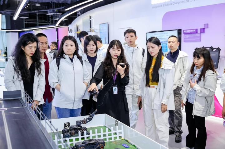 第二站来到云天励飞——端云协同赋能城市治理。云天励飞以其"算法芯片化"的核心能力和"端云协同"的技术路线,构建了从算法、芯片到大数据的全栈式AI能力。品牌运营中心总经理胡思幸详细介绍了五代NPU产品矩阵及其在深圳智慧安防、疫情防控中的实践案例。云天励飞天使投资人、中美创投创始合伙人、董事长胡浪涛补充分享了科创型企业的投资见解:“投资云天励飞时,我们重点关注其‘端云协同’技术路线与国产替代潜力,最终通过资源整合助力其科创板上市。投资逻辑上,我们更看重技术的稀缺性与产业化节奏。”学员们在参观中直观感受到AI深度融入城市治理、教育和产业升级,逐渐成为高质量发展的数字底座。